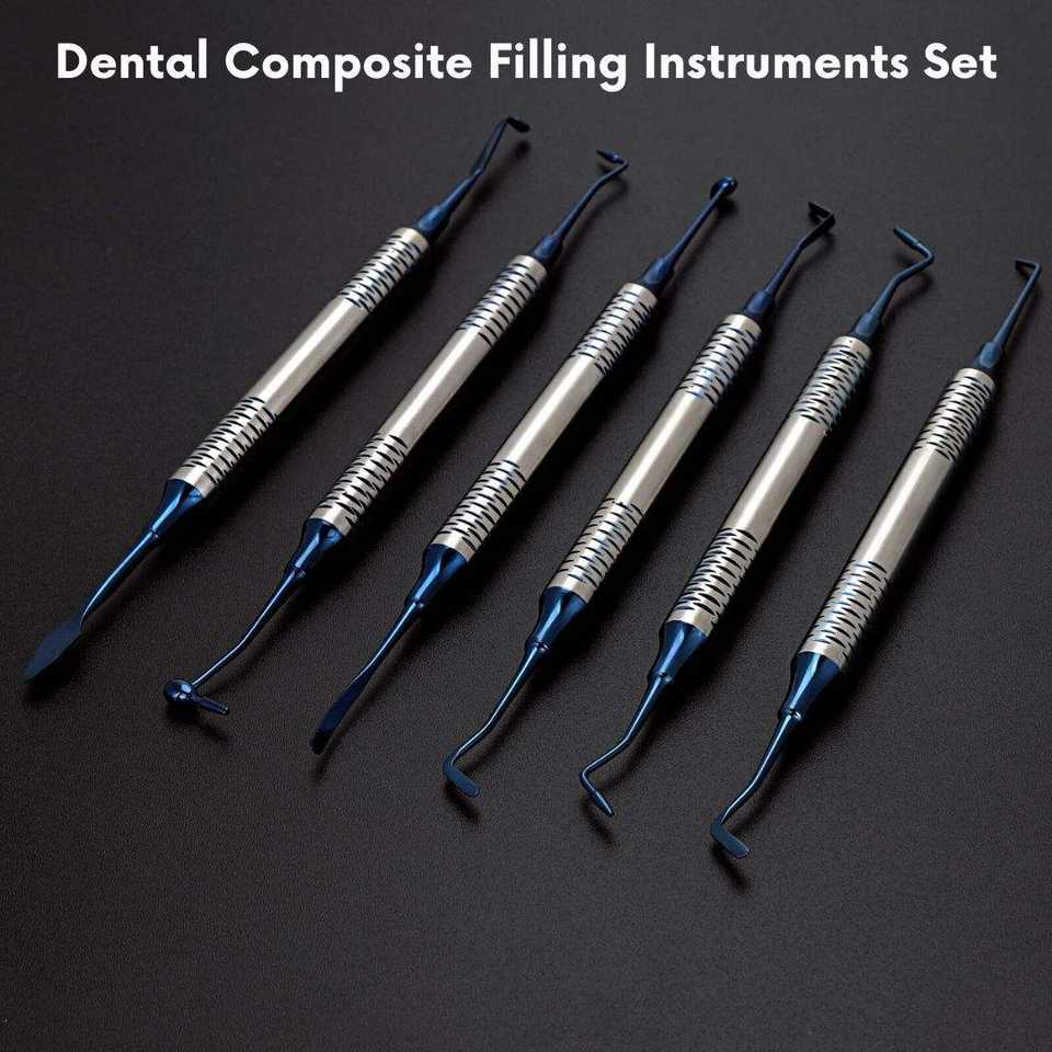 Ensemble de 6 instruments de remplissage dentaire manuels en composite, en acier inoxydable, réutilisables, kit de restauration pour les procédures dentaires chirurgicales