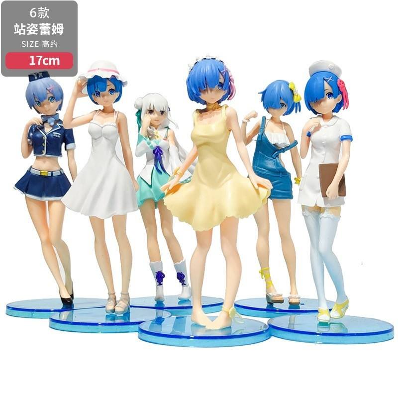6 pièces/ensemble Figurines d'anime Rem's From Zero Rem Ram Maid Girl en PVC Figurines de collection Modèles de jouets