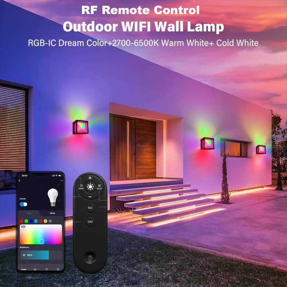 Applique murale extérieure intelligente étanche 6W/12W avec commande par application, compatible avec Alexa et Google Home, luminaire mural RGBCW Tuya LED