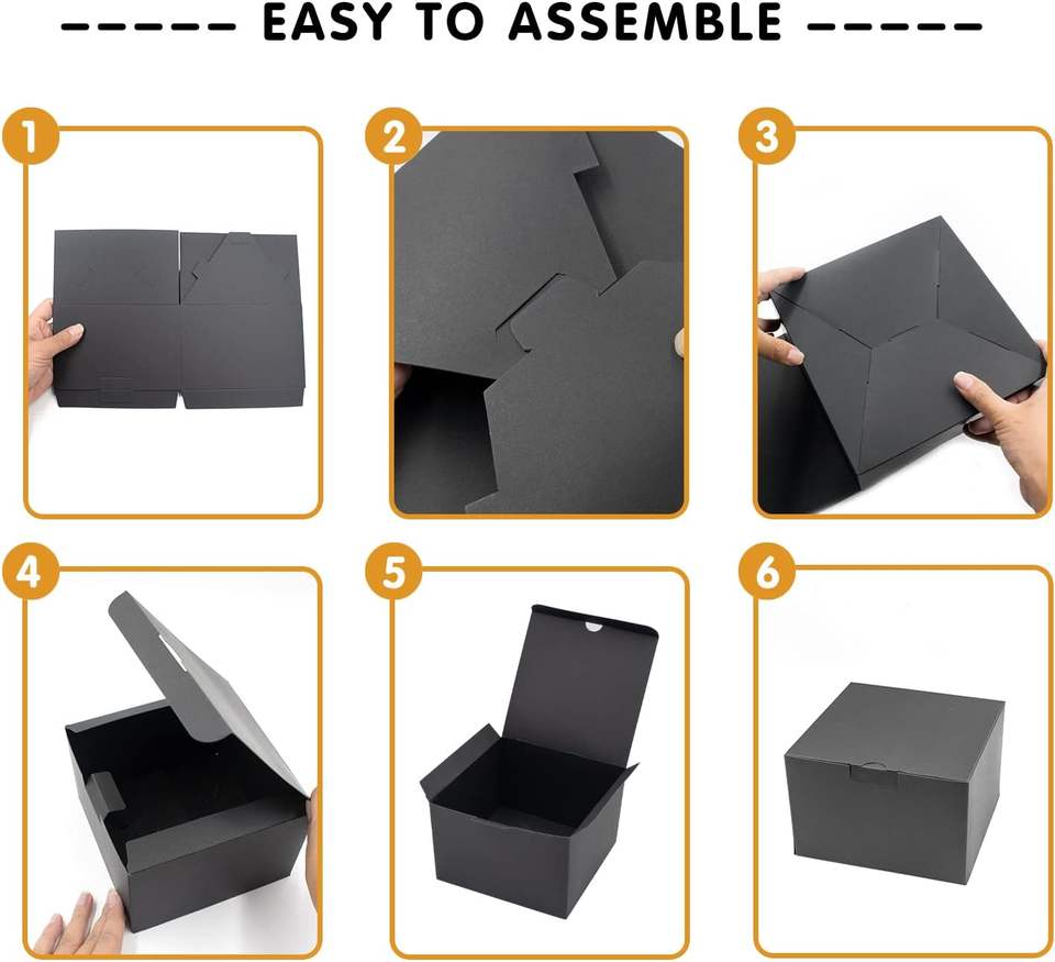 Boîte cadeau noire 6x6x4 pouces avec couvercle, papier recyclable adapté pour les mariages, les festivals, les cadeaux, les remises de diplômes, les anniversaires