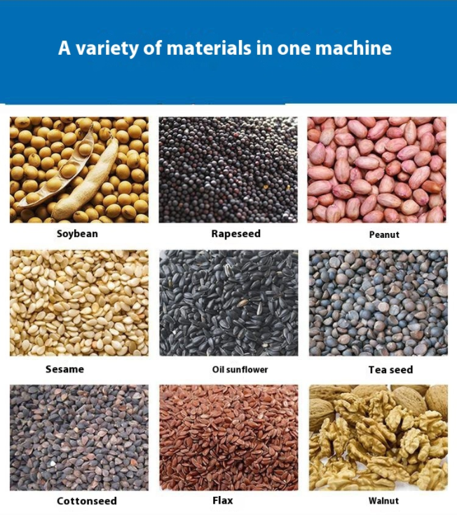 huile de graine d'asphalte, Huile de soja, Rap d'huile de graine, Huile de graines de thé, Huile de basilic, Huile de sésame, D'huile de noix de pin, Huile de graines de tournesol, Almond oil, Huile de noix, Huile d'arachide, Huile de noix de coco, Huile d'olive, Huile de palmeType d'huile