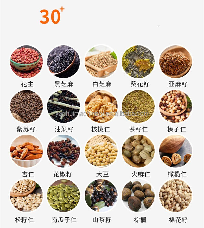 huile de graine d'asphalte, Huile de soja, Rap d'huile de graine, Huile de graines de thé, Huile de basilic, Huile de sésame, D'huile de noix de pin, Huile de graines de tournesol, Almond oil, Huile de noix, Huile d'arachide, Huile de noix de coco, Huile d'olive, Huile de palmeType dhuile