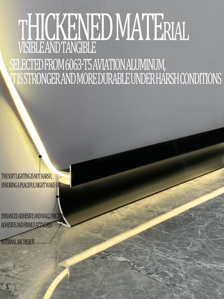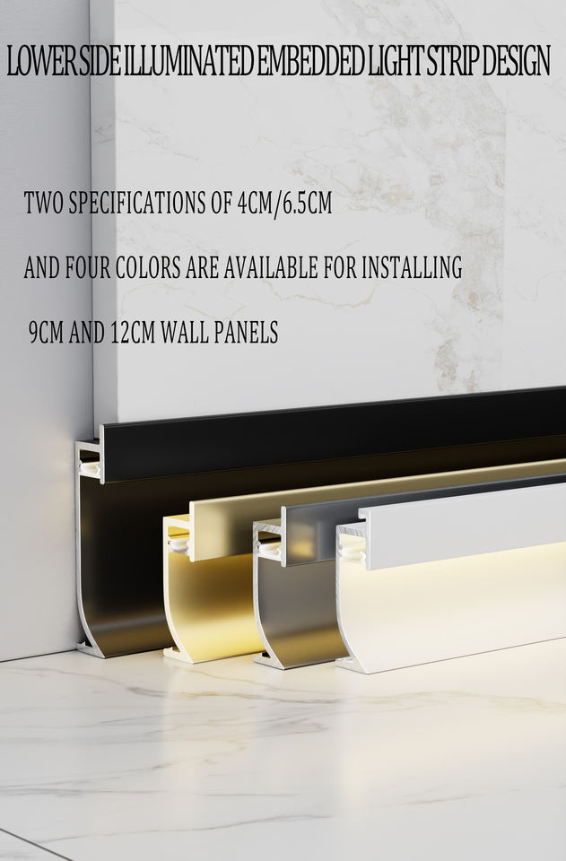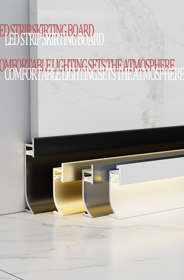 Profilé de plinthe en aluminium moderne de 6 cm de hauteur avec LED intégrées pour cuisine, profilé de jointure murale pour base d'armoire