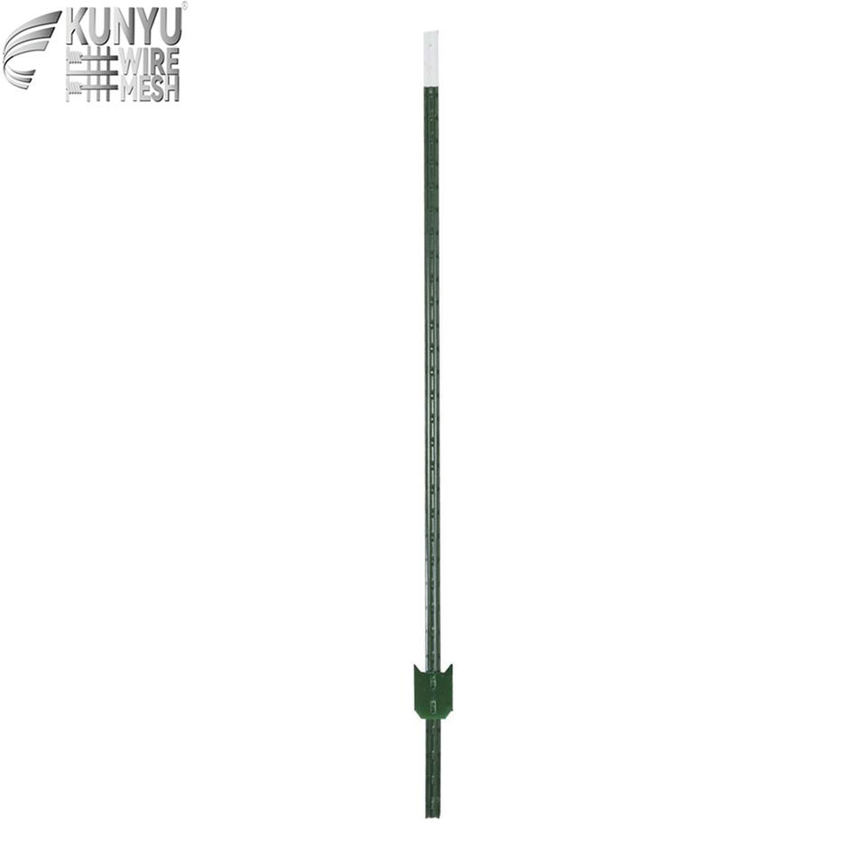 Poteau en T clouté de 6 pi, 6-1/2 pi, 7 pi, 7-1/2 pi, 8 pi, 1,25 lb par pied, en acier recyclé, peint en vert, pour clôture, style T avec plaque d'ancrage