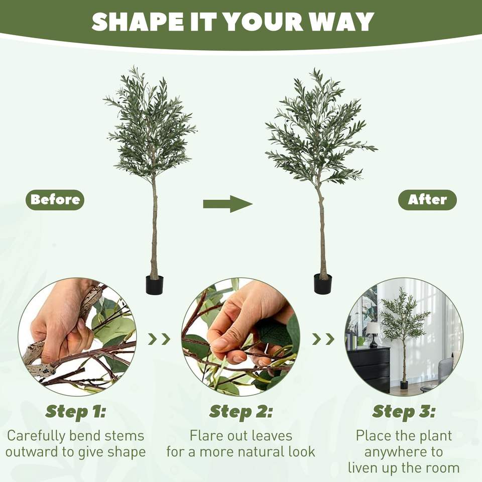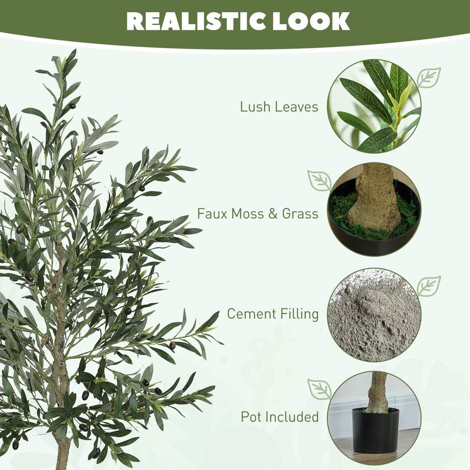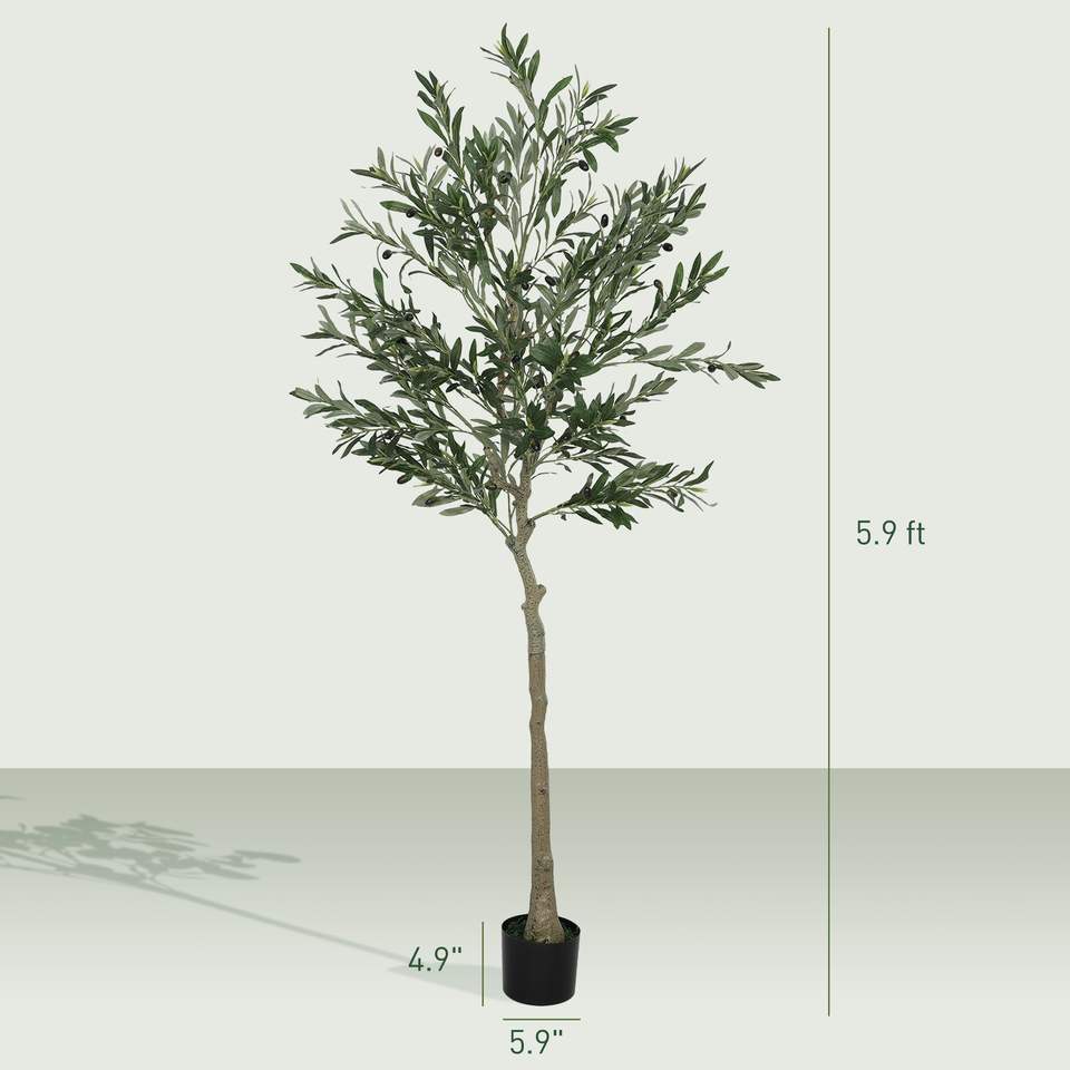 Arbre d'olivier artificiel d'intérieur de 6 pieds avec feuilles et fruits en soie, plante artificielle en pot pour la maison ou le bureau, salon
