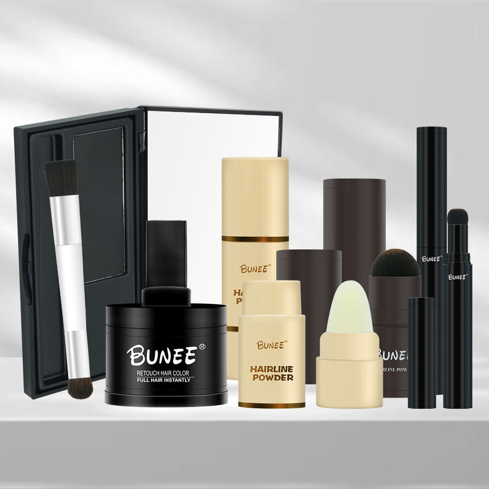 Poudre de camouflage pour racines de cheveux imperméable BUNEE Private Label 6g, couvre les cheveux gris, cache la ligne des cheveux, avec pinceau