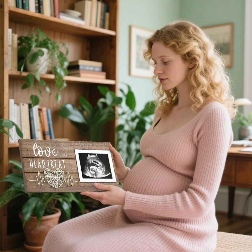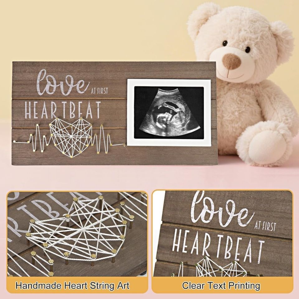 Cadre photo en bois de 6 pouces pour échographie, souvenir de la première battement de cœur, cadeau de grossesse pour jeune maman, cadeau de fête des Mères, révélation du sexe du bébé