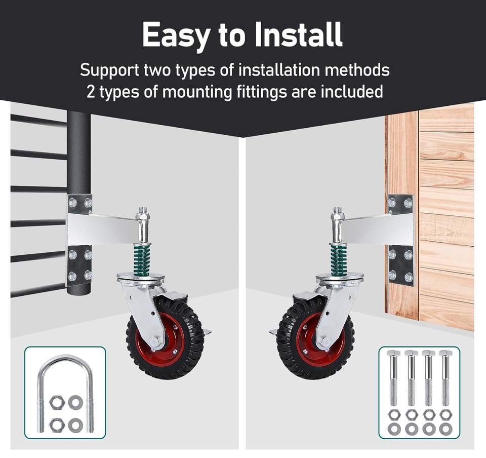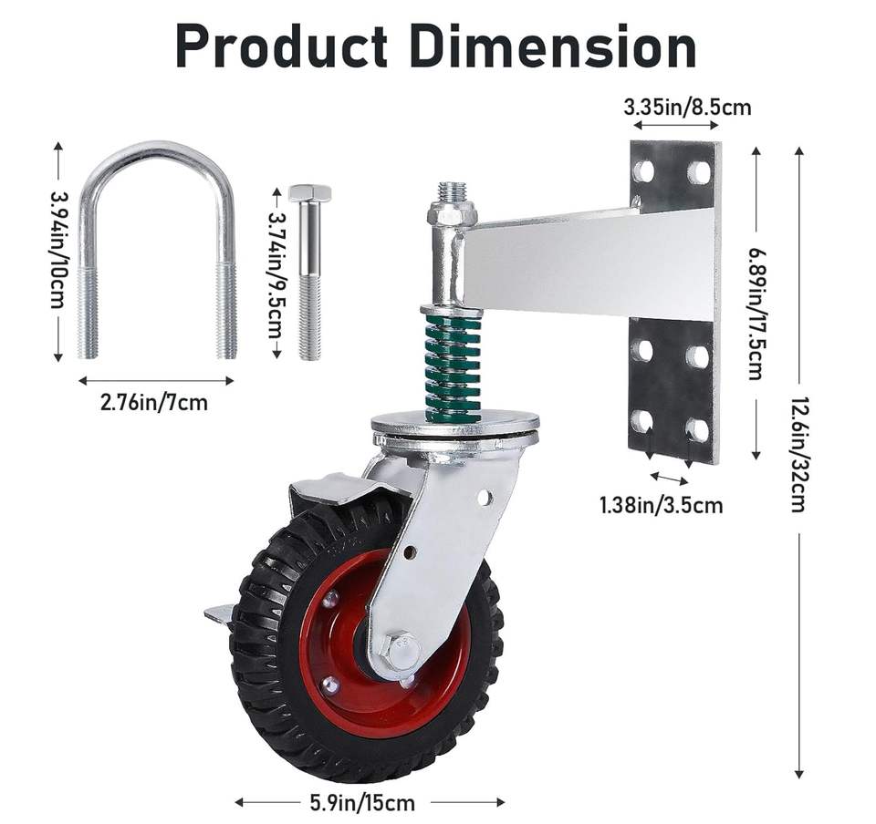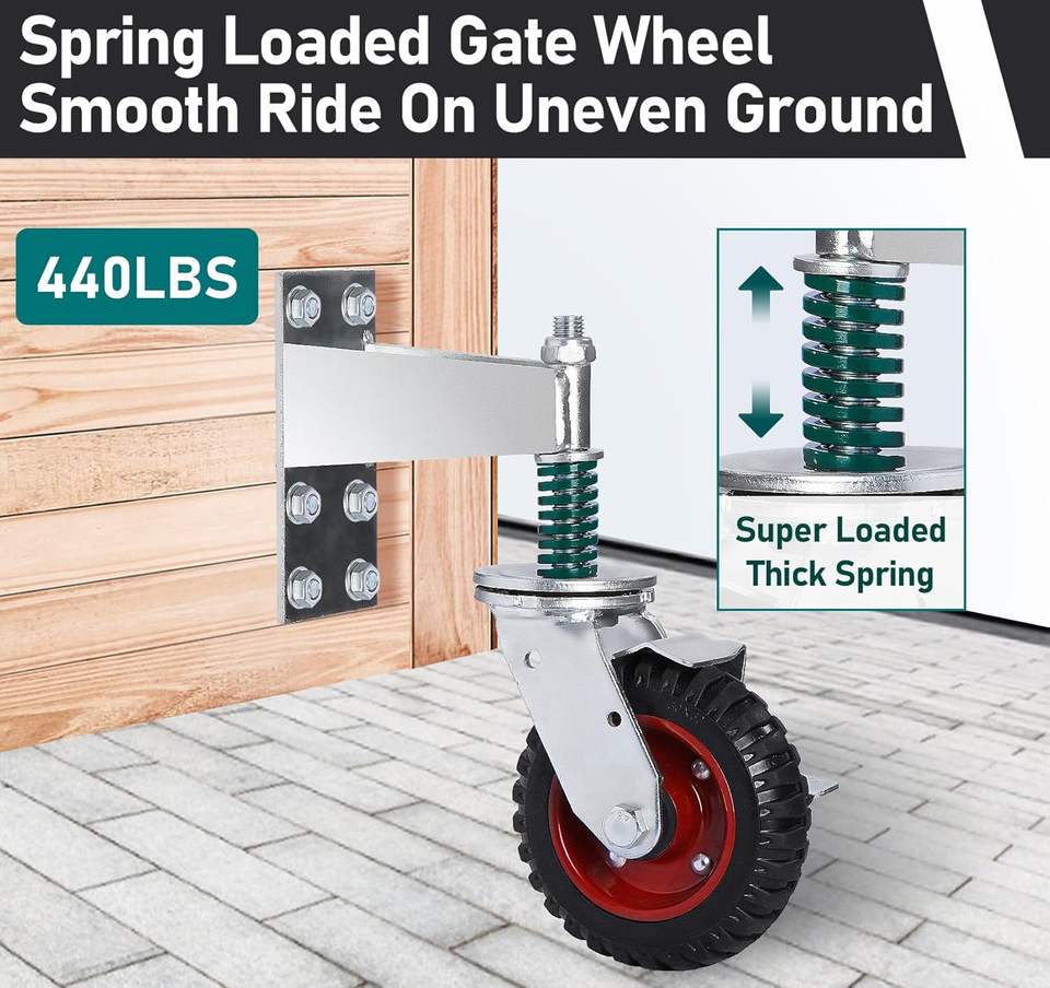 Roulette de porte de 6 pouces avec frein, roulettes de clôture robustes roues de porte à ressort pour portes en bois portes en tube métallique