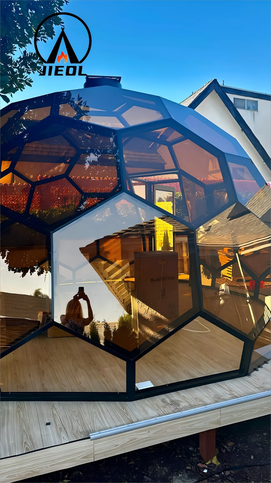 Tente de maison de dôme marron de couleur de thé géodésique de 6m 7m 8m de diamètre pour des événements extérieurs et des retraites de week-end de glamping