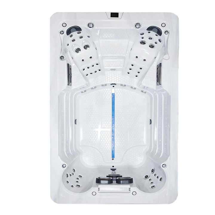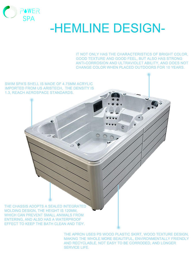 Bain à remous rectangulaire autoportant de 6m Piscine spa sans fin Baignoire spa de natation extérieure pour le bien-être et les loisirs