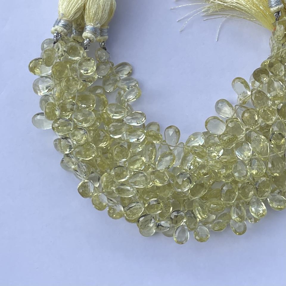 Product Name:Natural Lemon Quartz Stone Pear Shape Faceted Briolette Beads