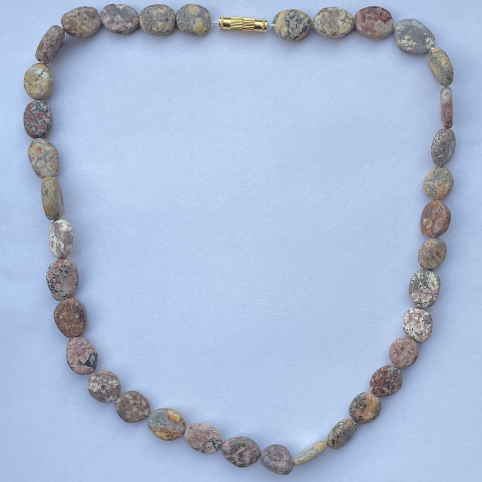 Collier de perles de pierres précieuses ovales lisses jaspe léopard naturel