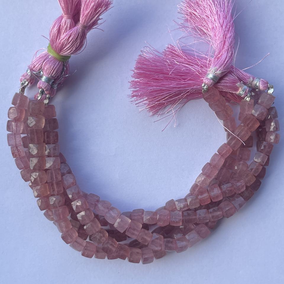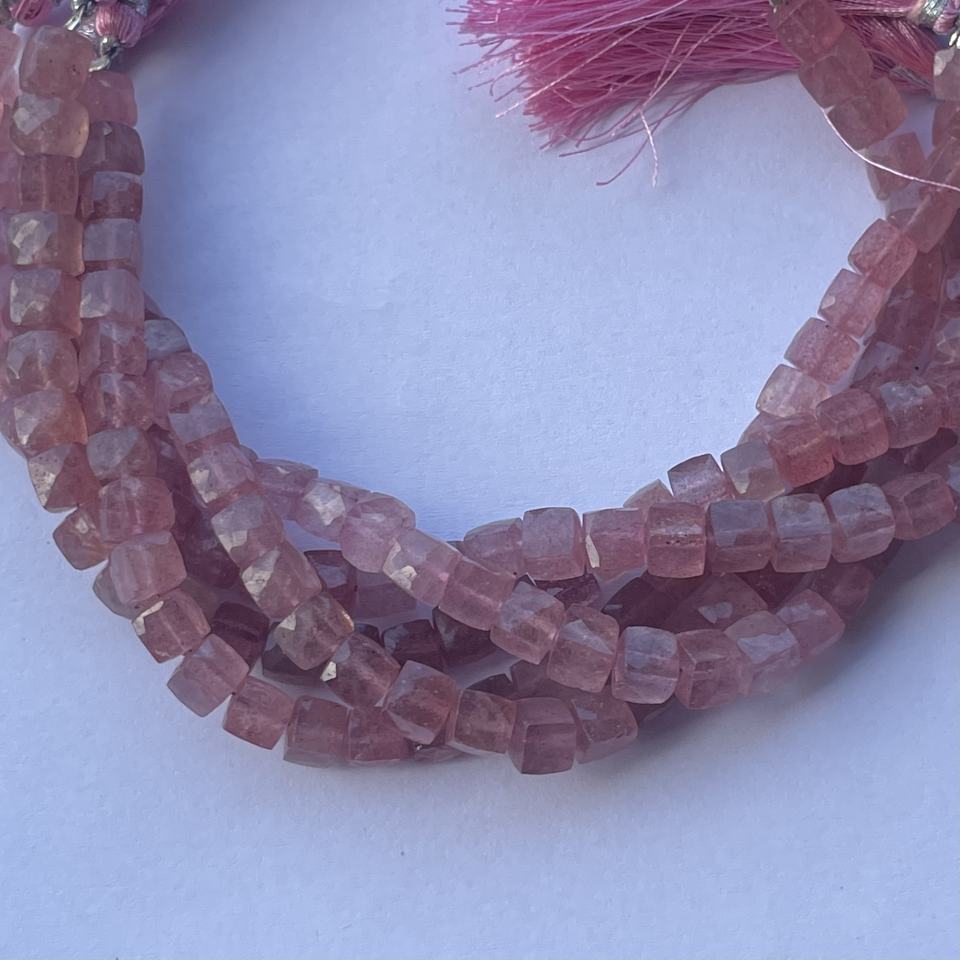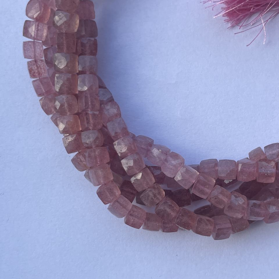 Product Name:Natural Pink Strawberry Quartz Faceted Box Cube Gemstone Beads Strand