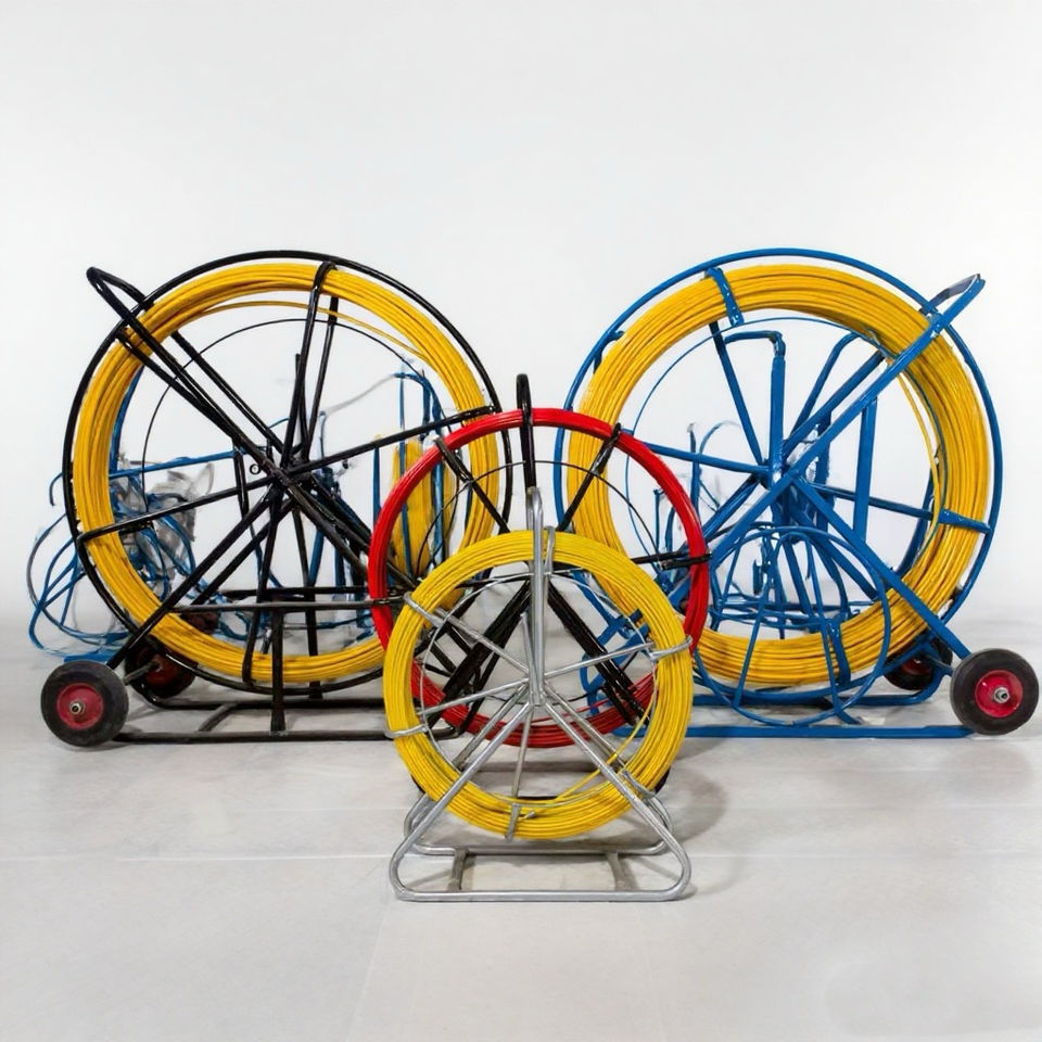 Outil de bande de poisson électrique de tige de câble de remorquage de 6mm X 100m avec support de bobine en acier et accessoires de câblage de conduit en fibre de verre
