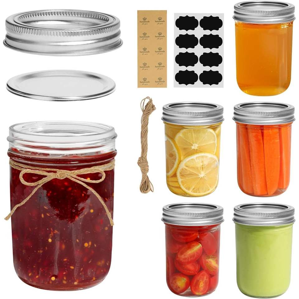 6 pots Mason en verre de 8 oz à bouche standard avec couvercles, pour confiture, gelée, épices, bocaux de conservation