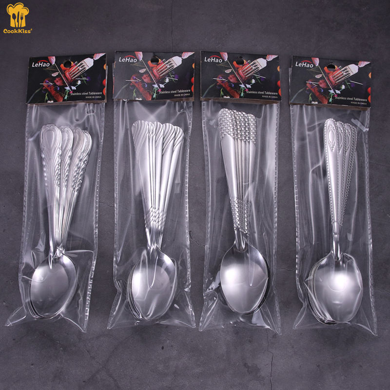 6 pièces/8 pièces/10 pièces/12 pièces Logo personnalisé échantillon gratuit pas cher prix 410 miroir polonais indonésie en acier inoxydable ensemble de couverts ensemble de cuillère
