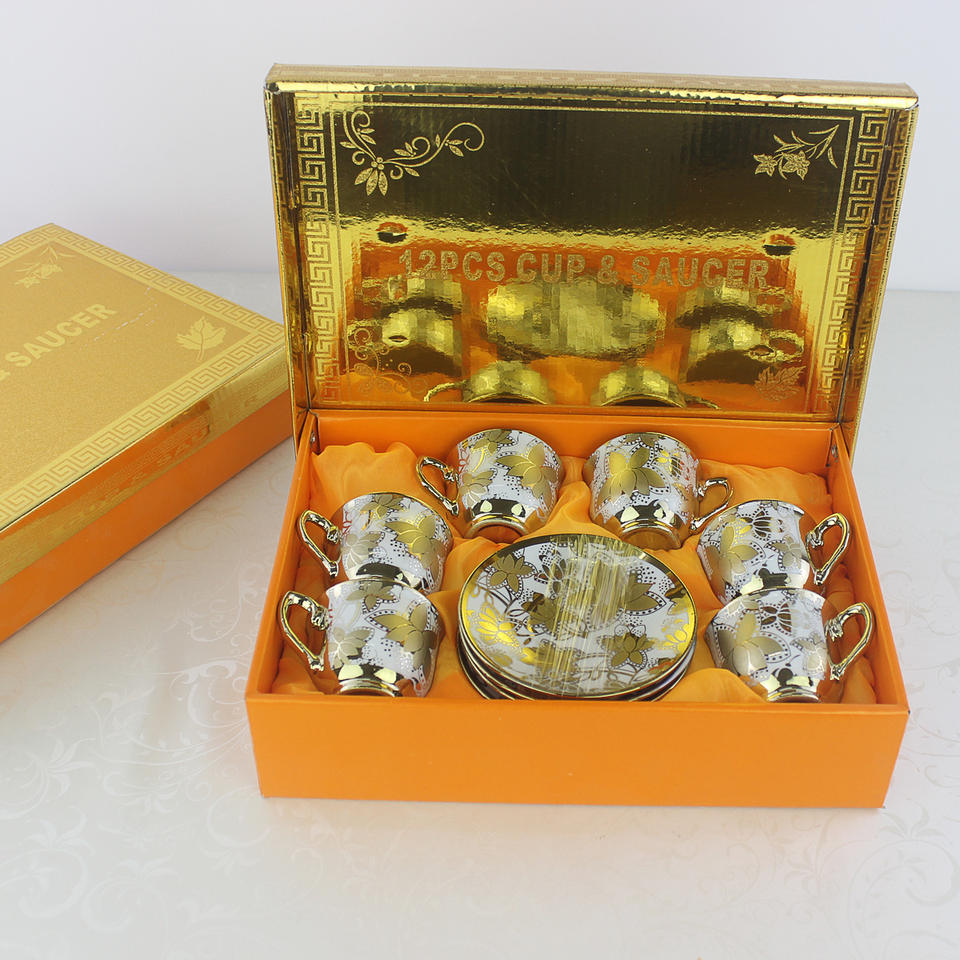 6pcs American Style Heat Resistant Eco-Friendly Ceramic Espresso Cup Set Reusable Tea Cups & Saucers
