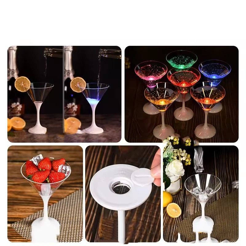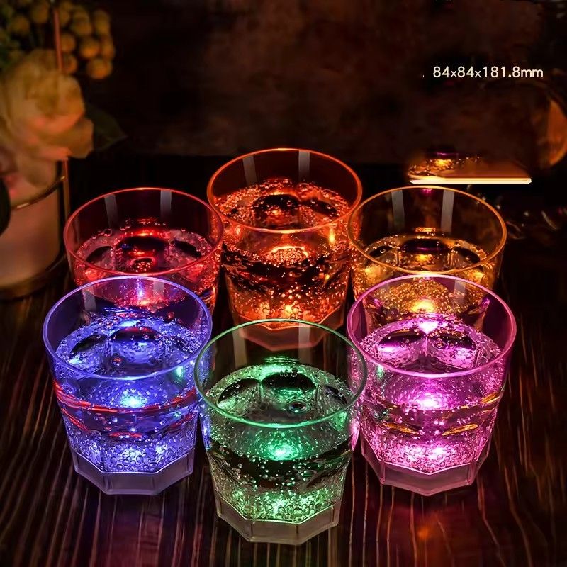 6 verres à cocktail octogonaux lumineux à LED pour bar, verres à vin en plastique de qualité alimentaire FDA, verres lumineux à LED avec batterie