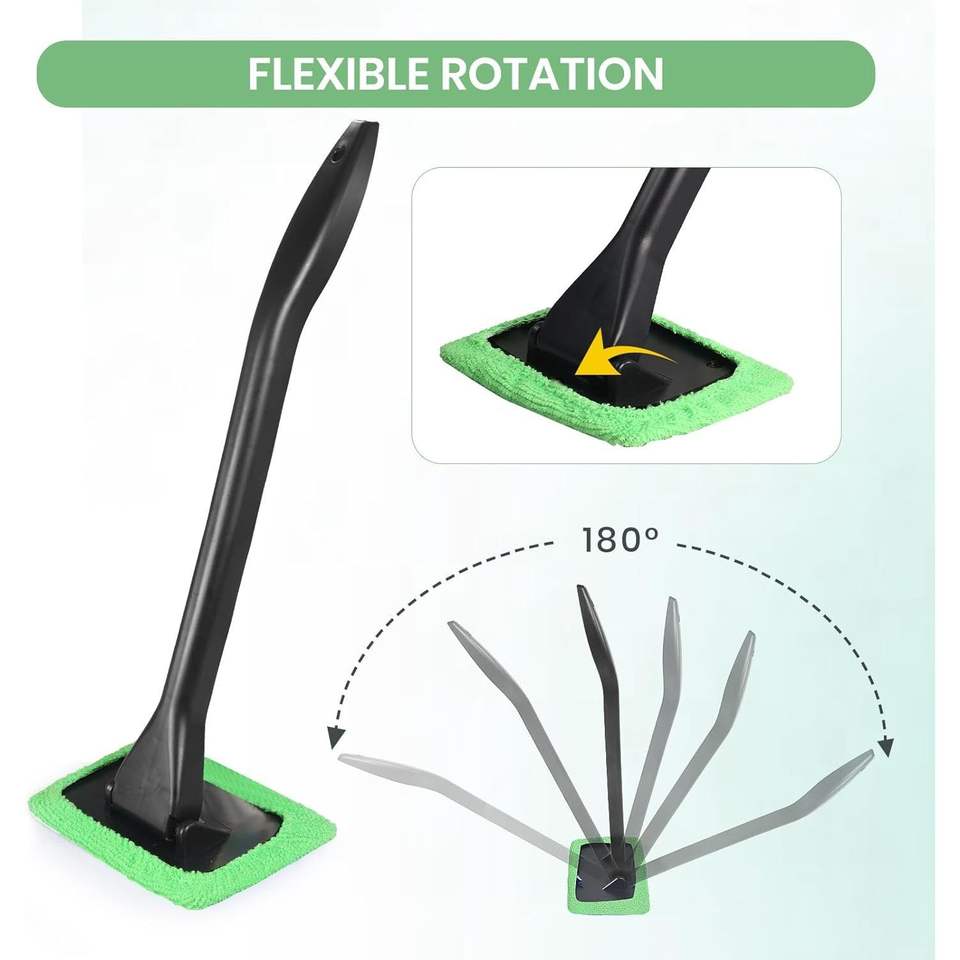 Kit de nettoyage de pare-brise automobile à manche extensible 6 pièces, nettoyeur de vitres en microfibre réutilisable et lavable avec 5 tampons