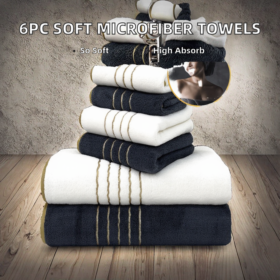 Lot de 6 serviettes de bain en microfibre tissée raffinée à motif sportif en polaire corail, serviettes de visage super absorbantes et douces pour usage domestique, vente en gros