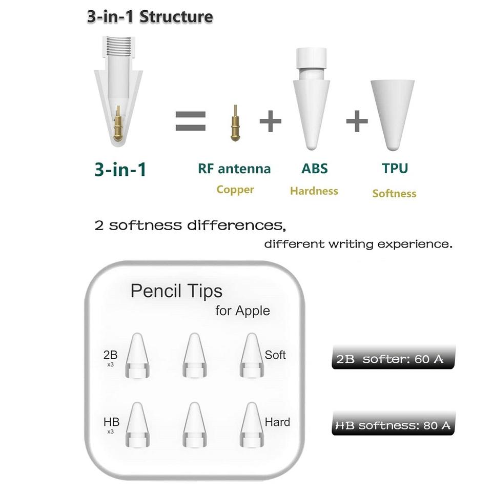 6 pointes de stylet compatibles avec Apple Pencil
