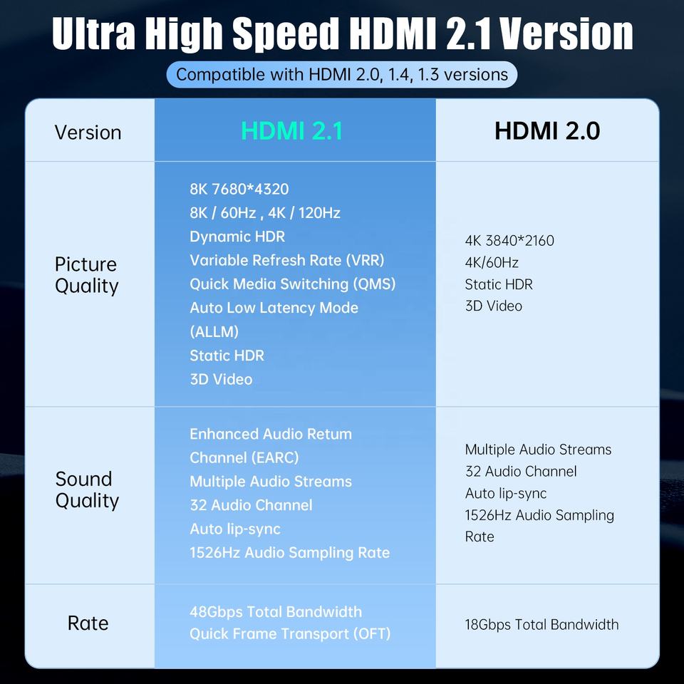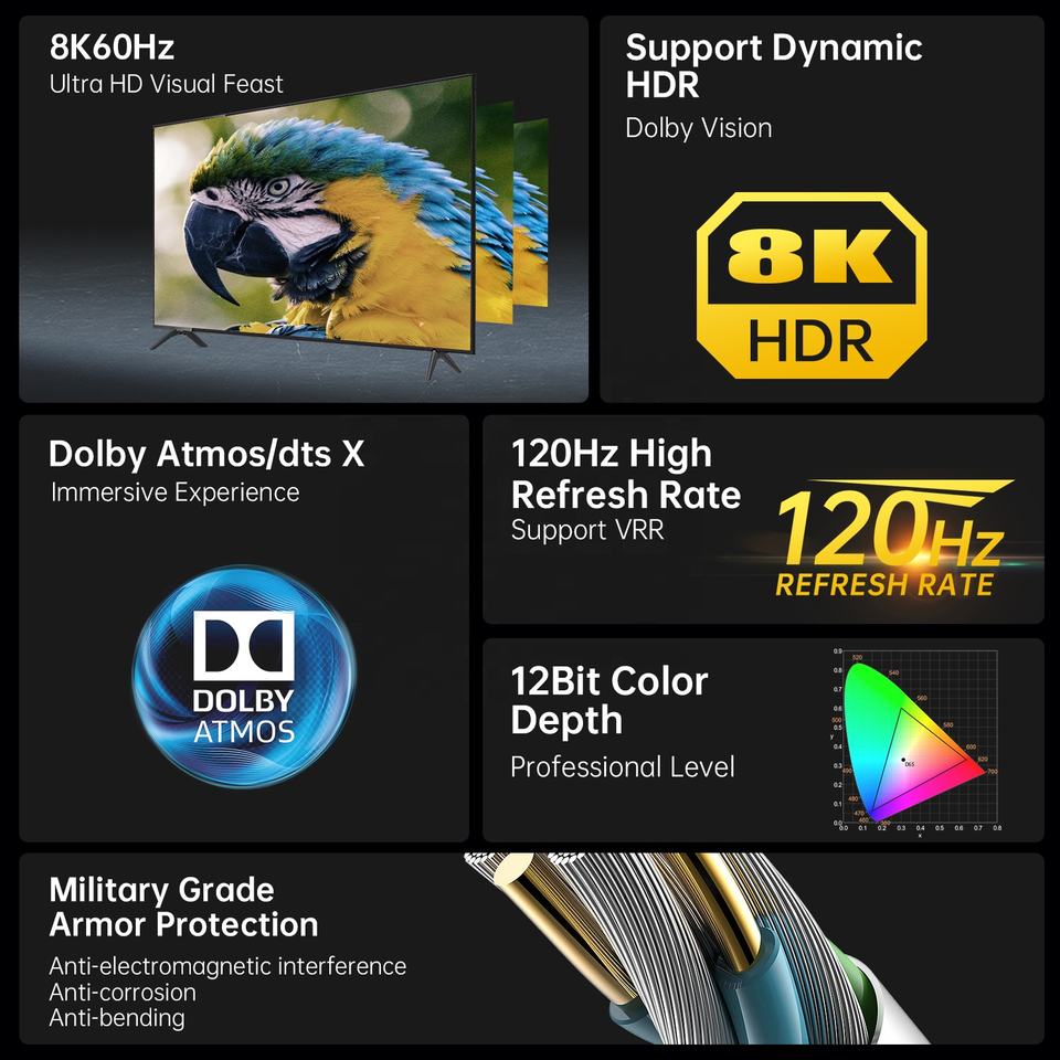Caractéristique 1:Taux de rafraîchissement 8K 60Hz et 4k 120Hz et 4K 60Hz 48Gbps