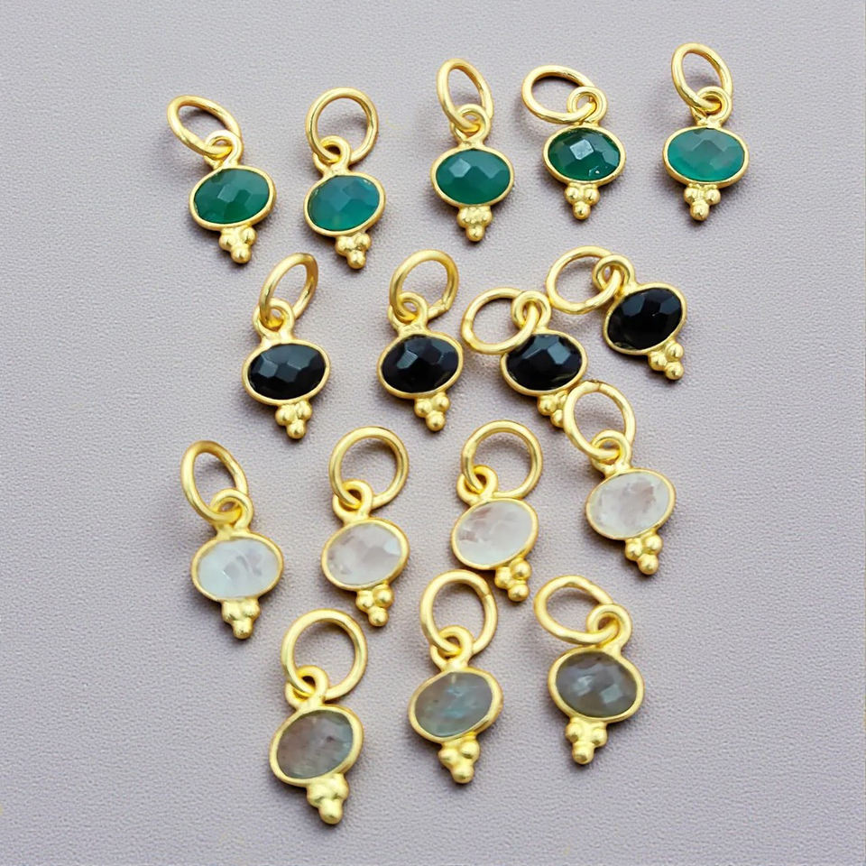 name or words:Gemstone Oval Charms 6x4mm Oval Briolette Cut Natural Birthstone Gold Plated 925 Sterling Silver Bezel Handmade Wholesale Charms
