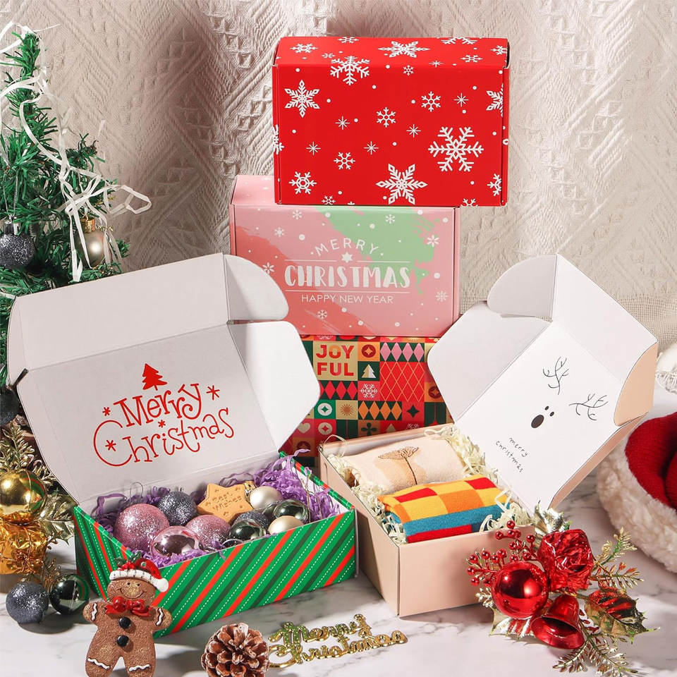 Petite boîte-cadeau de Noël de cadeau de 6x4x2 pouces avec couvercle, boîtes d'expédition recyclables en carton ondulé pour les petites entreprises, pour le cadeau