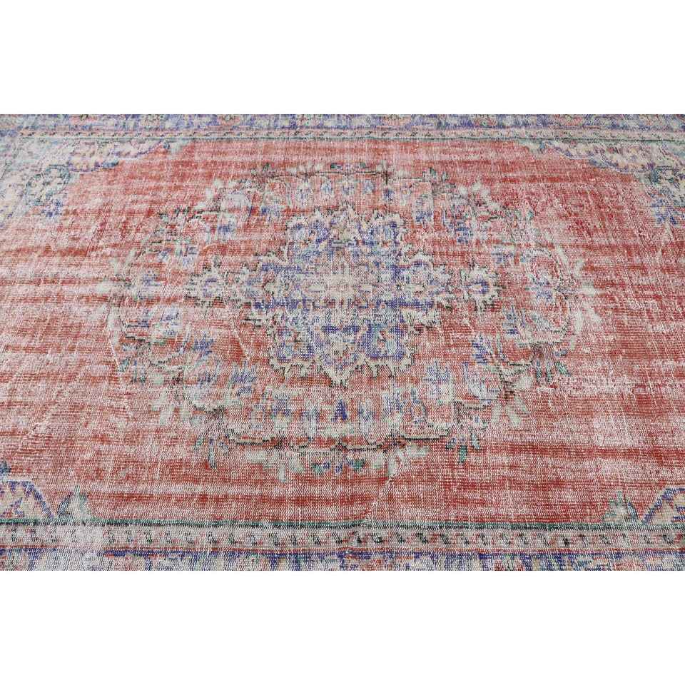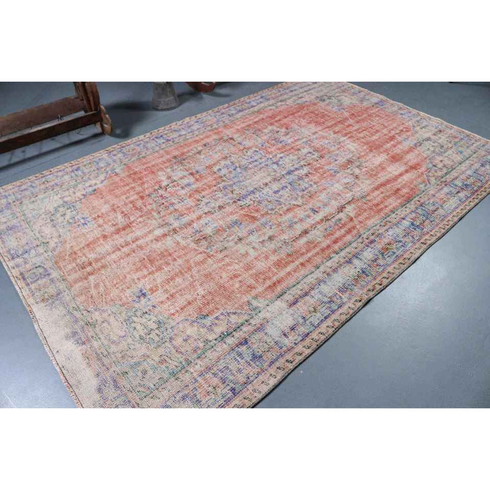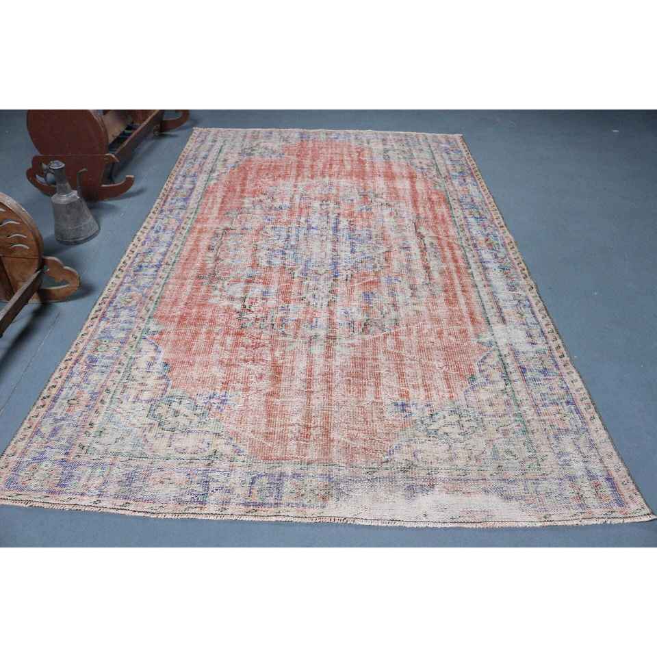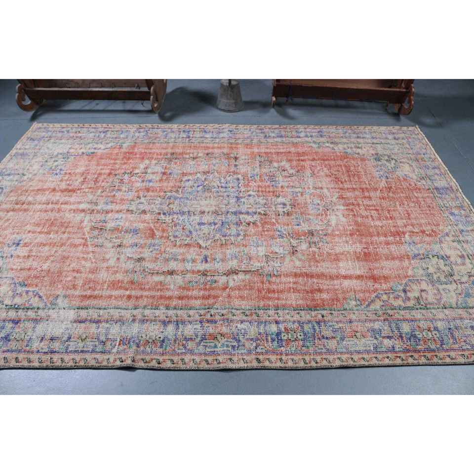 Grand tapis turc de 6x8,9 pieds, tapis rouge uni vintage