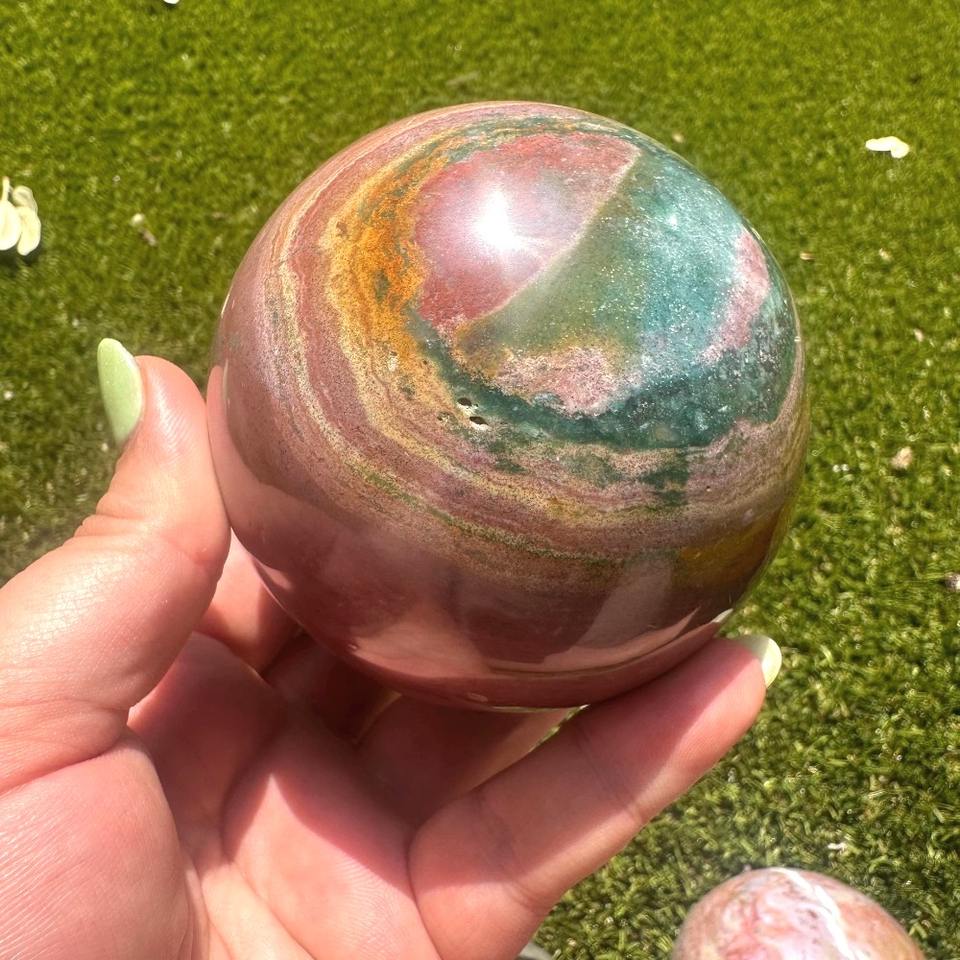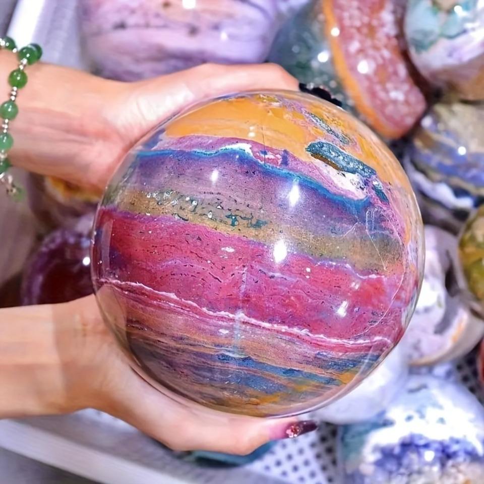 Sphère de pendule en cristal naturel de 7-10 cm, pierres brutes de jade et cristaux de guérison, sphère de jaspe océanique