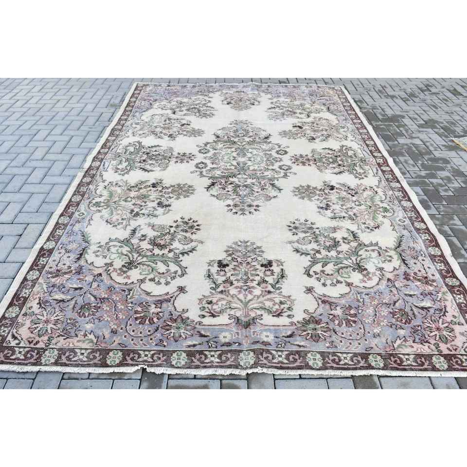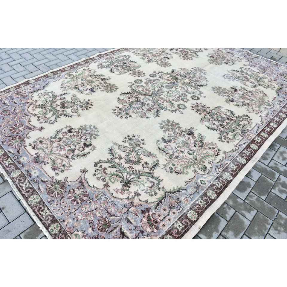 Tapis de 7,1 x 12,6 pieds, tapis turc vintage surdimensionné, tapis en laine blanche