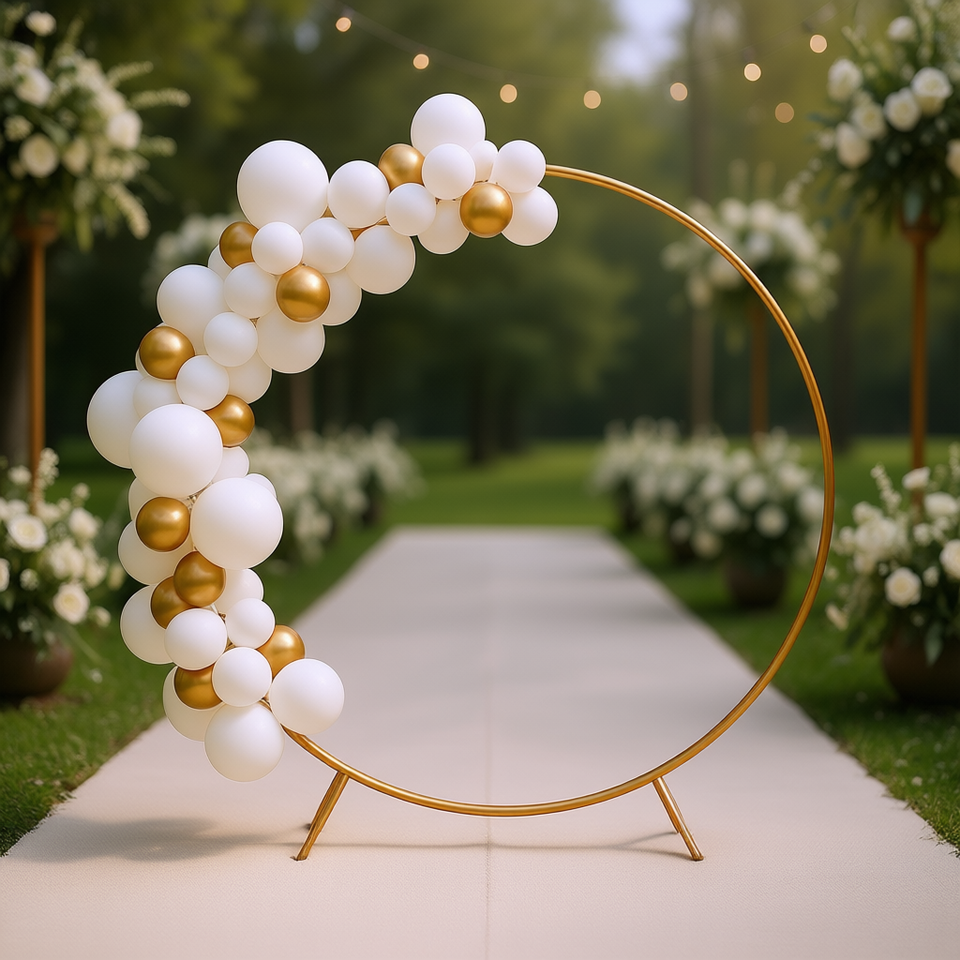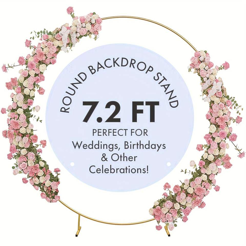 Arche de ballons ronde en métal doré de 7,2 pieds, support réutilisable et détachable pour toile de fond de mariage, décoration de baby shower, photomaton