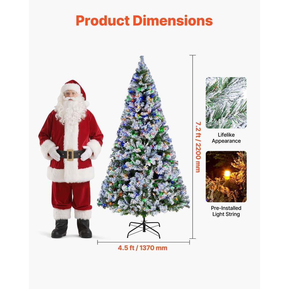 Sapin de Noël artificiel floqué pré-éclairé de 2,2 m avec 470 lumières LED colorées, 11 modes d'éclairage, 1346 pointes de branches pour la maison et le bureau