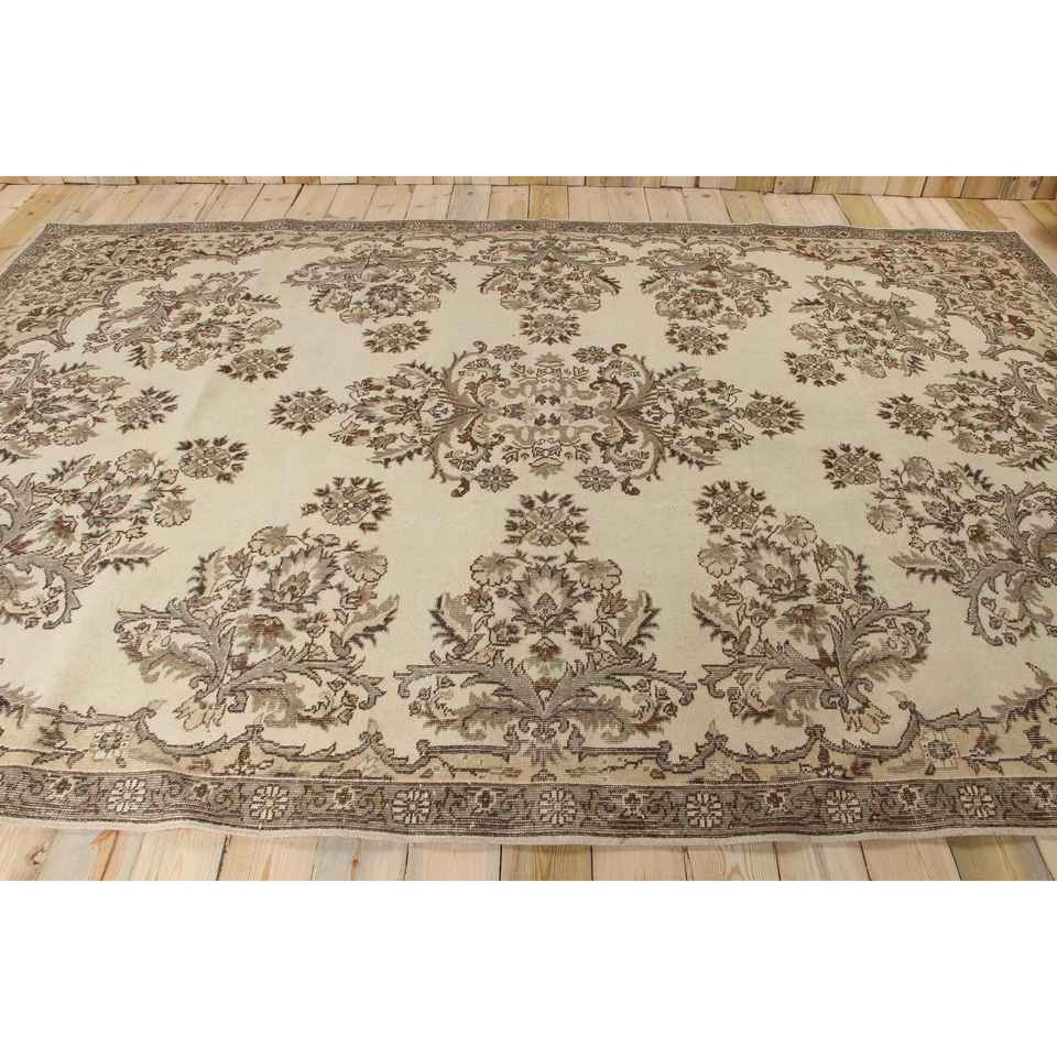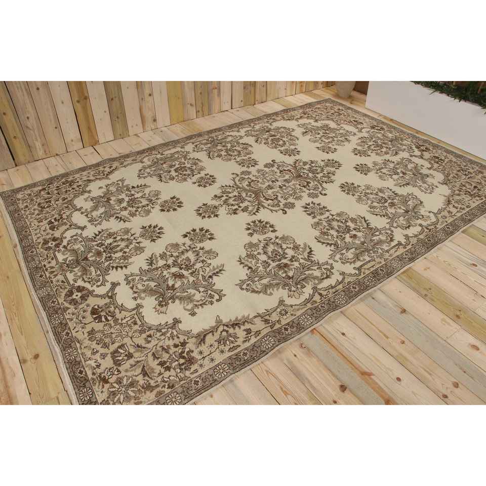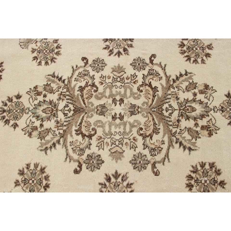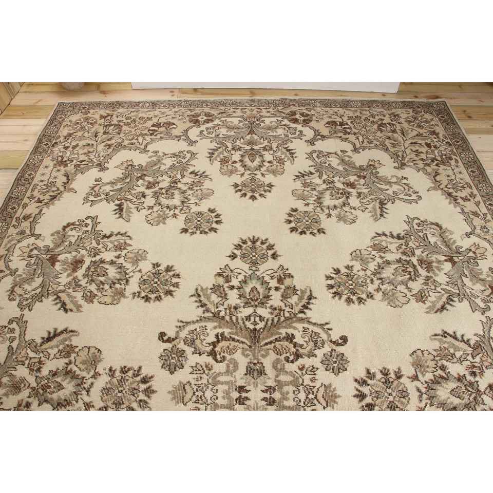 Tapis turc 7,4 x 11,2 pieds, tapis vintage brun à bordures en laine