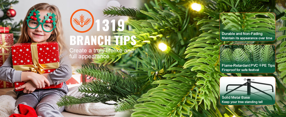 Sapin de Noël artificiel pré-éclairé de 7.5 pieds en sapin de tremble avec 700 lumières claires listées UL vertes