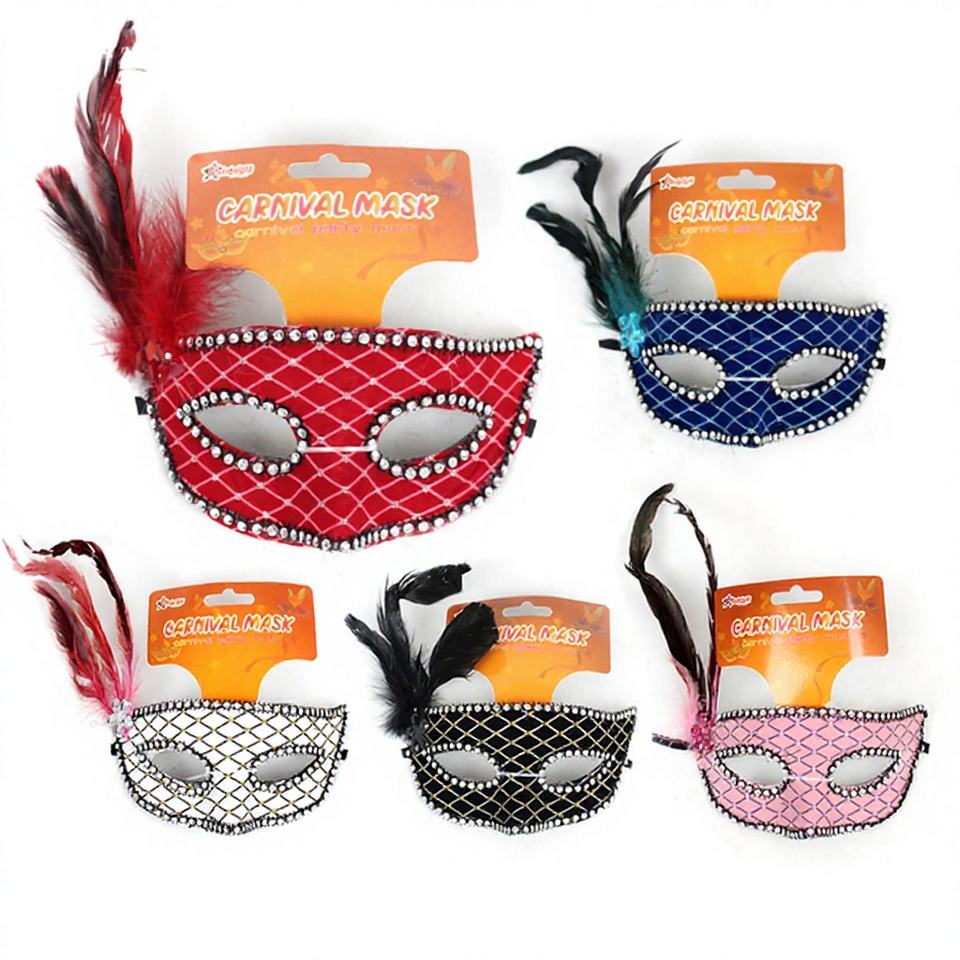Masque facial de fête 7,5"X3" 120 pièces/boîte, masque pour les yeux en plumes pour cosplay, costume d'Halloween, masque de mascarade imprimé en typographie pour occasions spéciales