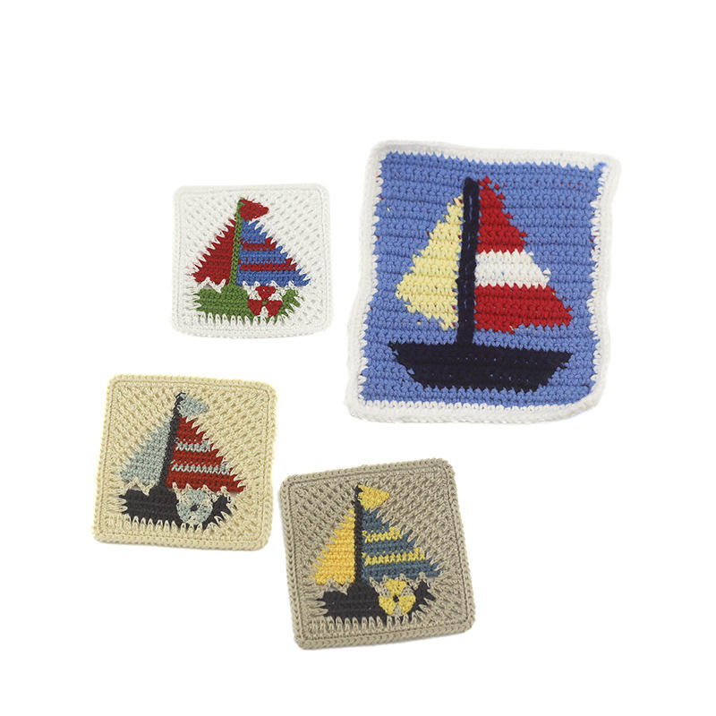 Autocollants en tissu décoratifs en polyester classique de style marin, forme carrée miniature de 7,5 cm, pour vêtements d'enfants