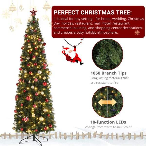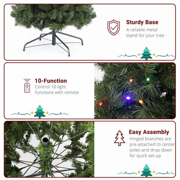7.5ft PVC Material Automatic Tree Structure 1090 Heads 350 Lights Warm Color 10 Modes Christmas Party Decoration Set