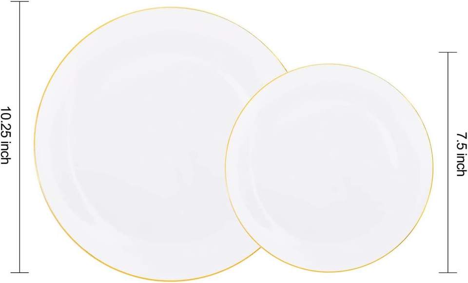 Assiettes en plastique jetables de couleur blanche de 7,5 pouces et 10 pouces, vaisselle dorée pour hôtels et restaurants, fête