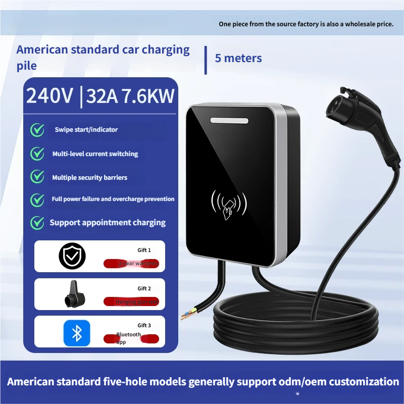 New 7.6KW 32A Wallbox EV Charger Level 2 Home Car Charging Station J1772 Plug 5M Cable IP65 Fast Smart 110-400V Retrofit/Upgrade