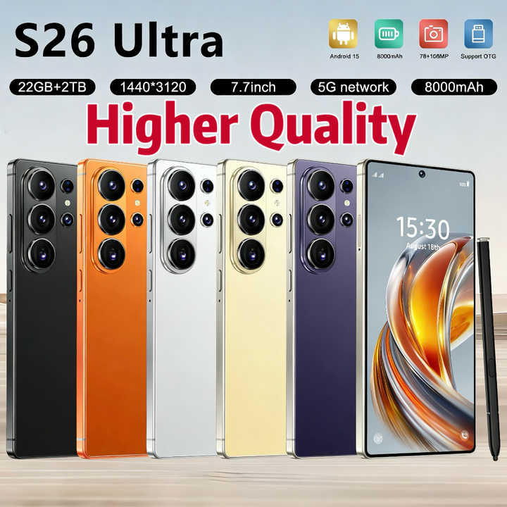Smartphone 5G S26 Ultra 7,7 pouces 22 Go + 2 To, haute vitesse, appareil photo 108 MP, choix populaire, Android 15, double SIM, pour les gamers