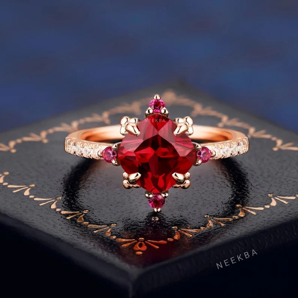 7*7mm coussin coupe laboratoire-cultivé rubis Art déco Style bague de fiançailles 925 argent pierres précieuses à la main bague de mariage de l'Inde
