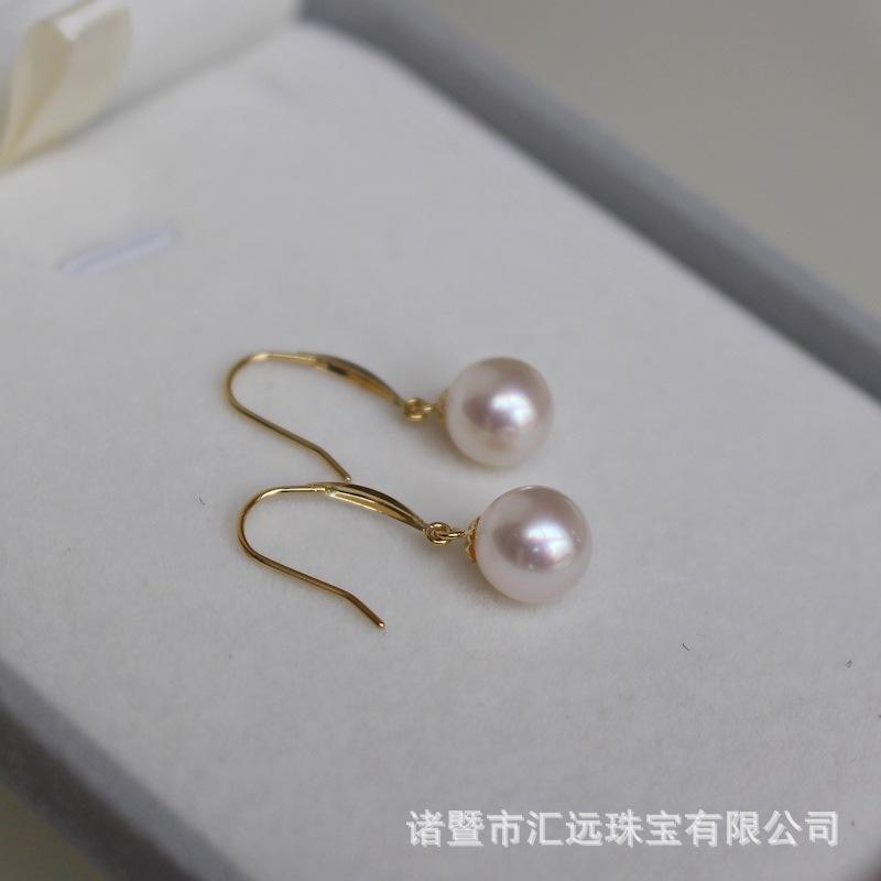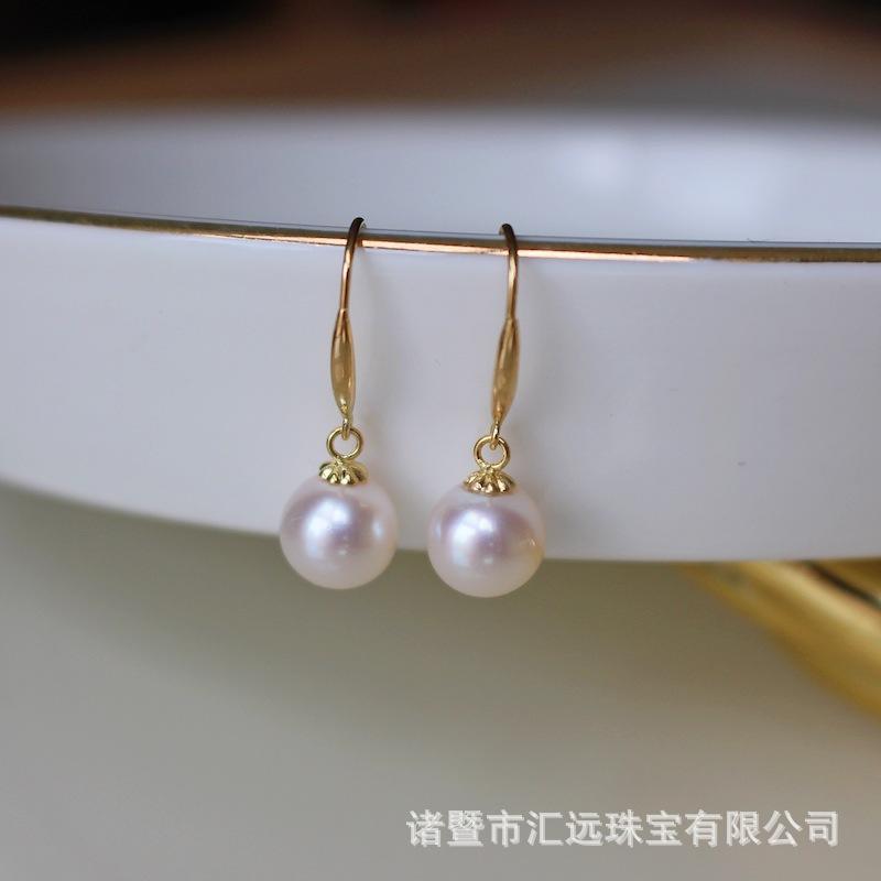 7-8mm Japanese Akoya Sea Water Natural Pearl Earstuds 18K Gold Elegant Short Style Women's High Heels Earrings