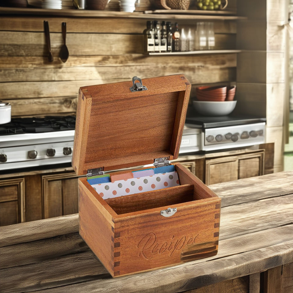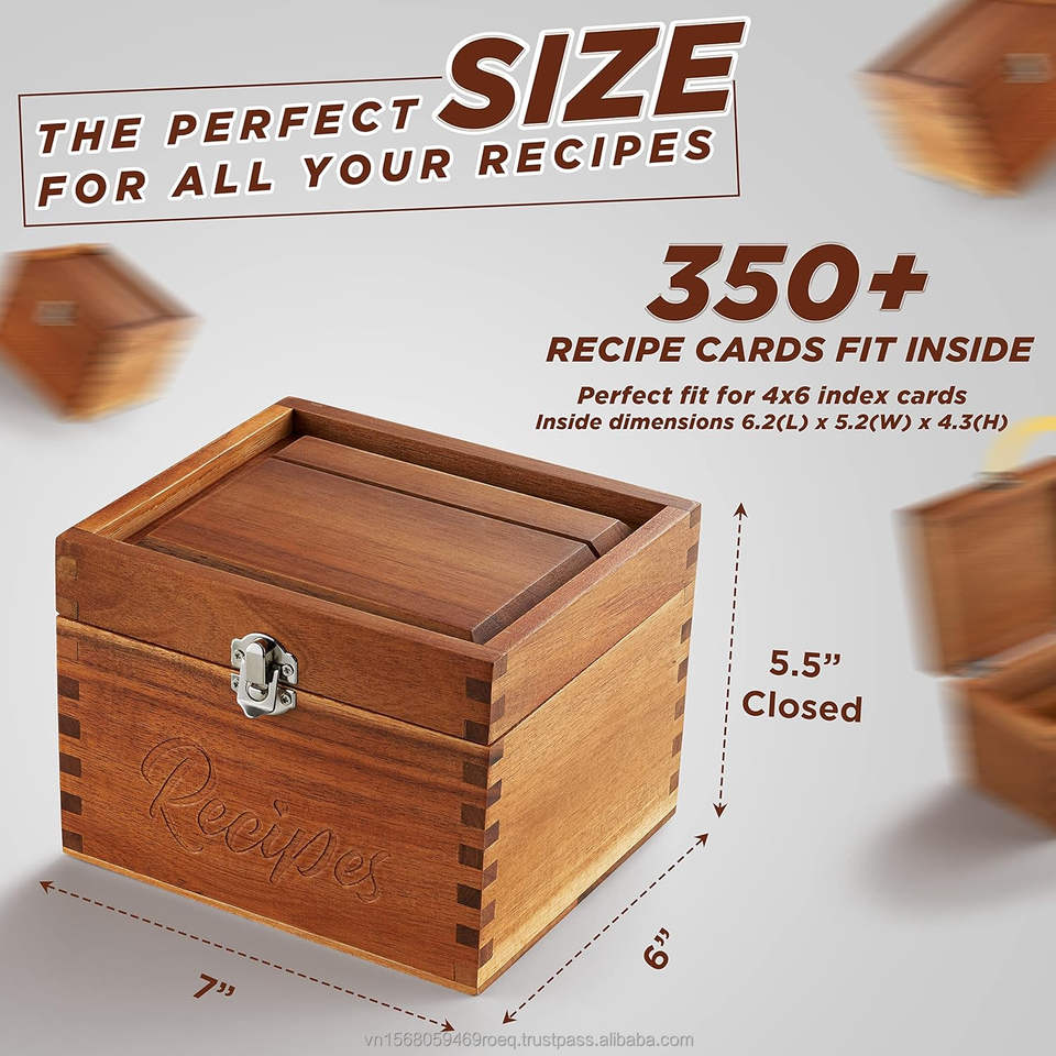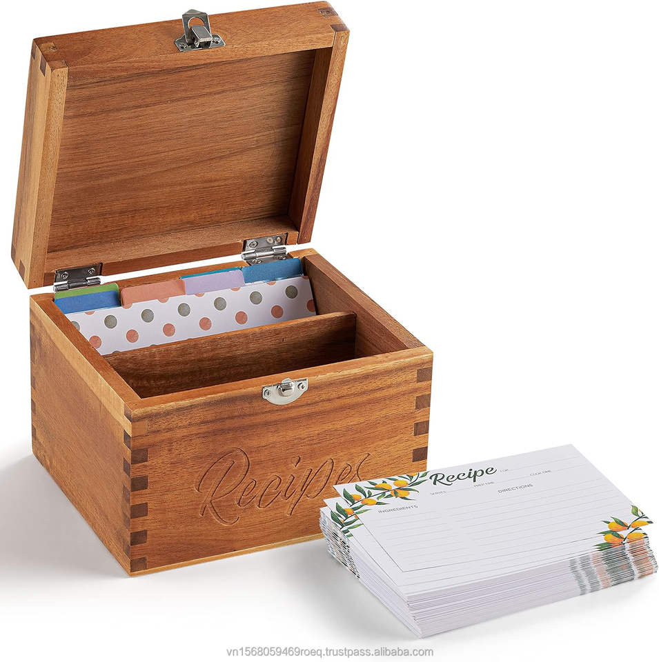7 "coffret de recettes en bois d'acacia Double compartiment 100 séparateurs 100 cartes couvercle de verrouillage carré multifonctionnel stockage de Logo gravé