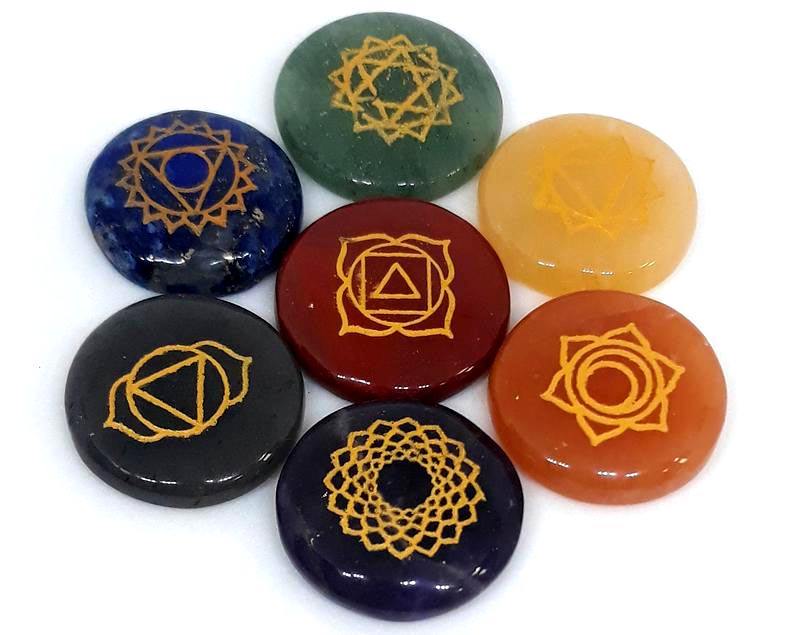 Ensemble de Reiki gravé à 7 chakras avec pierres polies et énergie chargée d'amour pour la décoration et la méditation Reiki