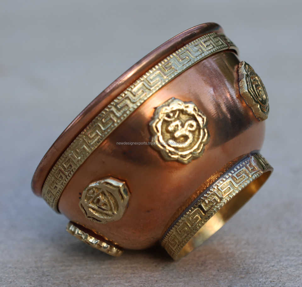 Brûleur d'encens en cuivre indien 7 chakras, bol d'offrande rituel aromatique pour autel, fait main, design exclusif, printemps/automne