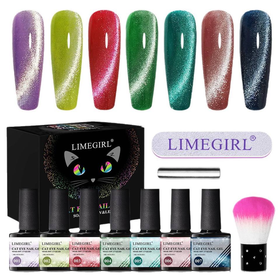 Ensemble de vernis à ongles en gel UV LED œil de chat en jade cristal 7 couleurs avec finition néon magnétique forte 15 ml chacun pour le nail art