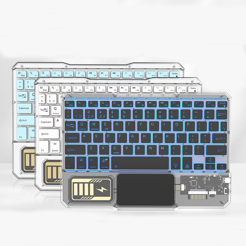 7 couleurs LED rétro-éclairage Transparent cristal clair BT clavier sans fil pour iPad Samsung Windows Android IOS universel