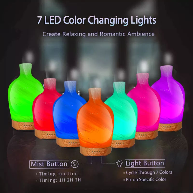 Diffuseur d'huiles essentielles électrique ultrasonique en verre 3D avec télécommande, 7 couleurs LED, aromathérapie, humidificateur, usage domestique, 120 ml