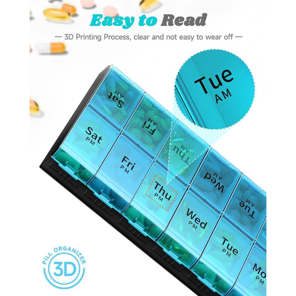 Organisateur de pilules extra large pour 7 jours, boîte à pilules hebdomadaire 2 fois par jour, étui XL AM PM pour le stockage de médicaments quotidiens surdimensionnés